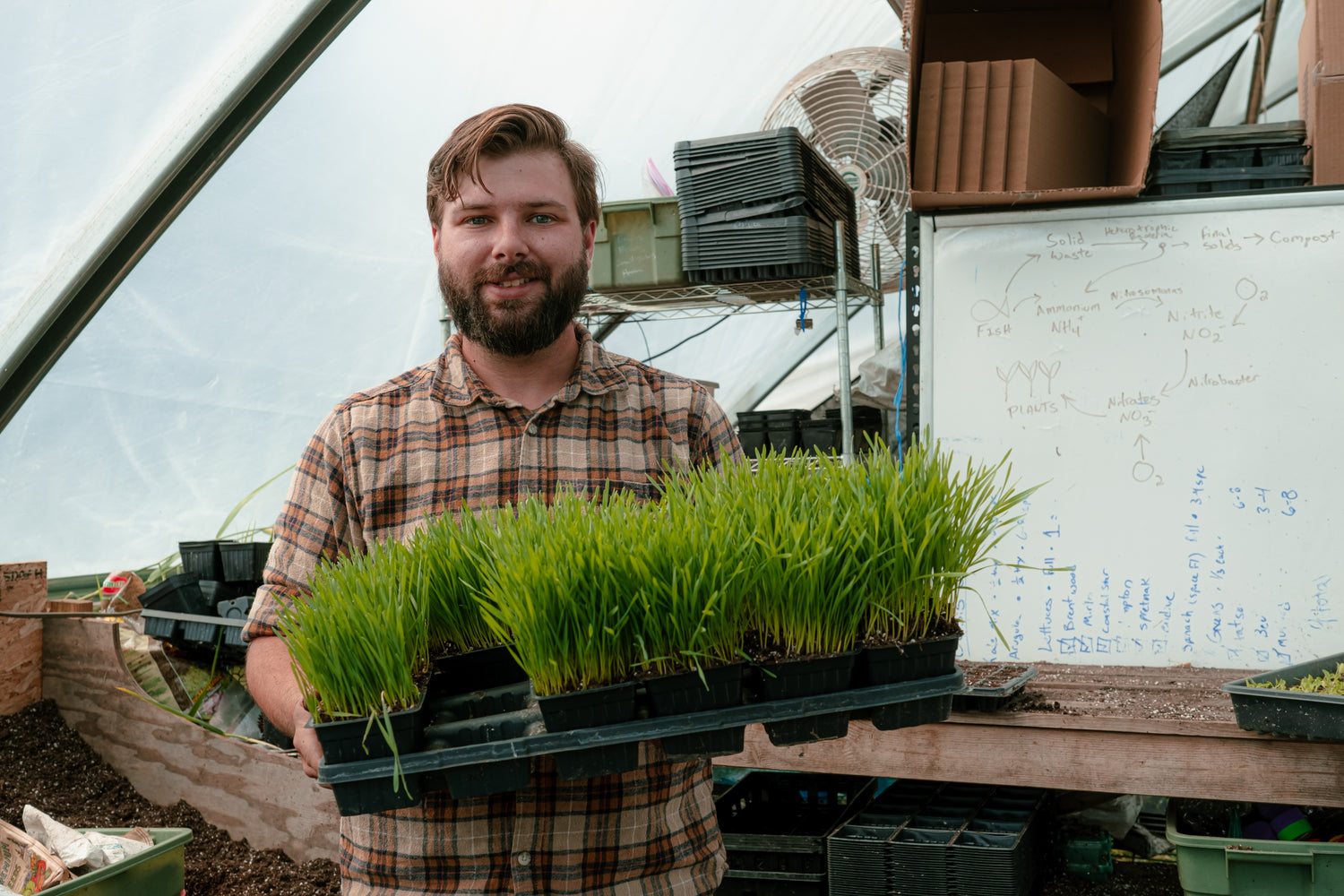 Build student-run micro-businesses — CSA shares, farmers-market booths, and profit/loss spreadsheets for entrepreneurship credit.