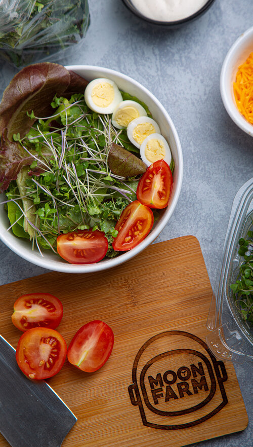 Since 2017, the farm has slowly grown from a single grow light producing microgreens to the new 5 acre property in Diamond, OH, home to diversified produce and a 10,000 gallon aquaponic system. Through the entire process, Moon Farm kept an eye on the original mission- How would you grow on the moon? It would need to be hyper-local, impeccably sustainable, waste-free and efficient.